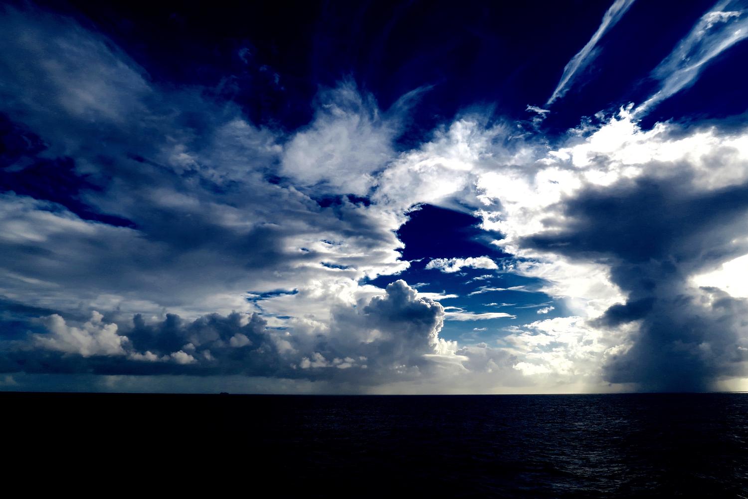 Sun blocked by spectacular clouds over the Caribbean Sea