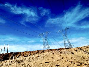 Power Lines against blue sky in Palm Springs, California