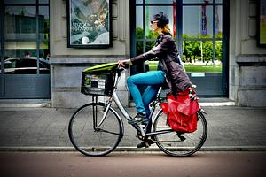 Woman on her way to work in Amsterdam