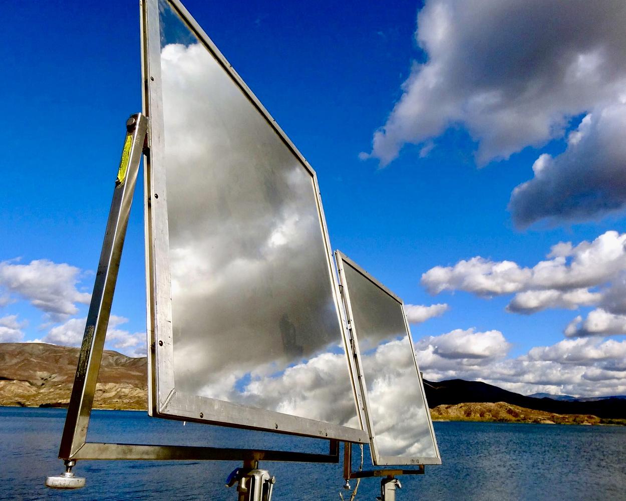 Reflecting boards on a Reality TV set lakeside near Hollywood, CA